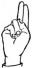 На ћирилици написано МИЊА ЛУДОШКИ састоји се из 11 слова [?]. Исписано ћириличном једноручном азбуком за глувонеме: